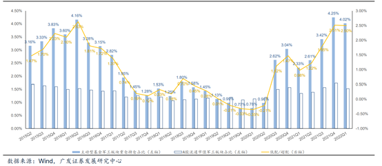 图3:22年一季度末主动型基金国防板块重仓占比达4.02%