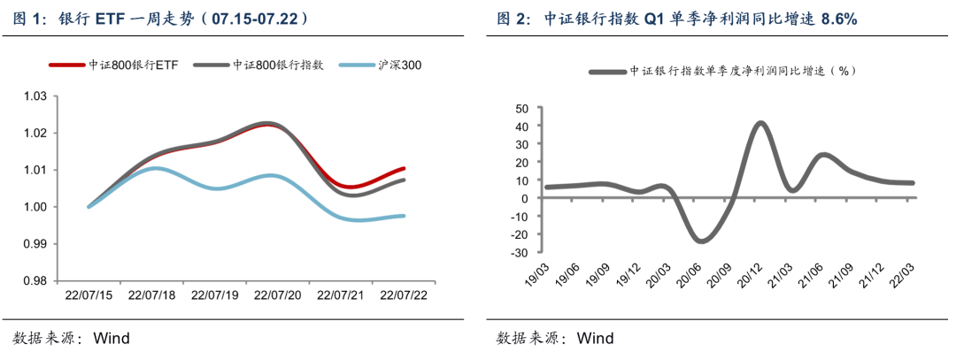 上周银行指数的收益率0.7%,跑赢沪深300的-0.2%;银行整体行情波动大于沪深300。中证800银行指数年初至今的收益率为-9.5%,跑赢沪深300的-14.2%。