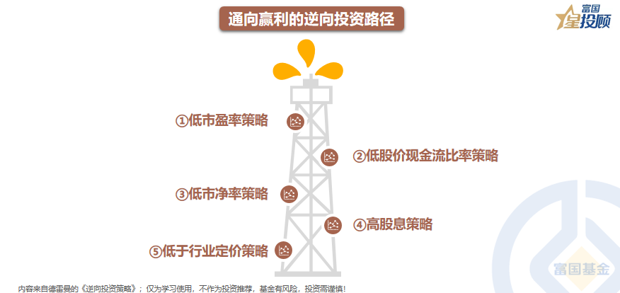 投资者的热情经常导致热门股被高估,冷门股被打入冷宫。但业绩异动和其他意外事件会导致两类股票被重新估值,回到更合理的价位,基于此,逆向投资策略可以让你轻松跑赢市场。逆向投资主要五大重要策略:低市盈率策略、低股价现金流比率策略、低市净率策略、高股息策略、低于行业定价策略。